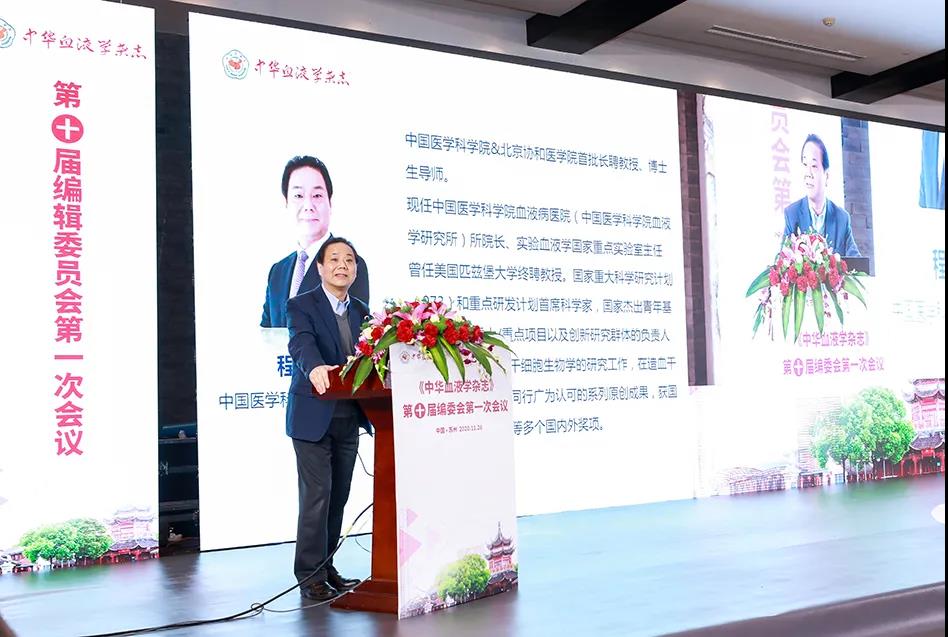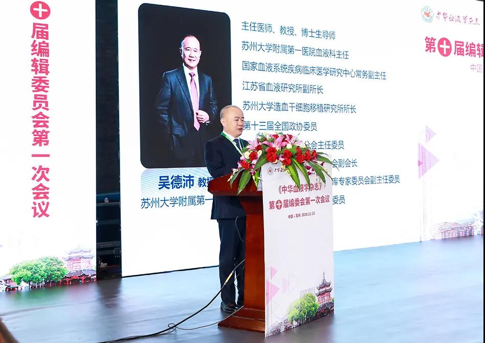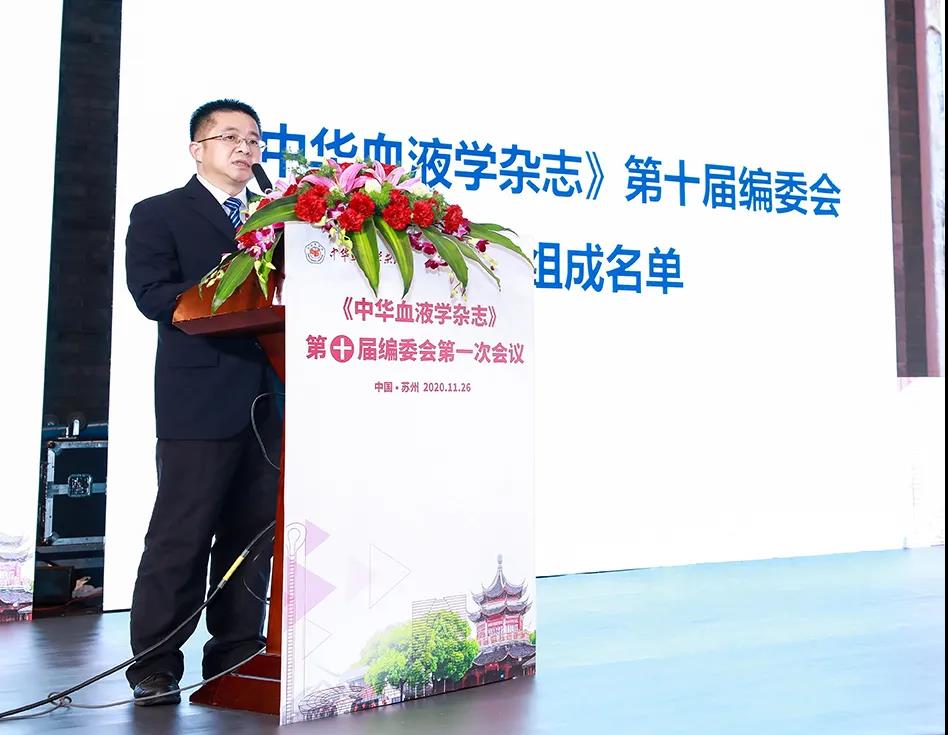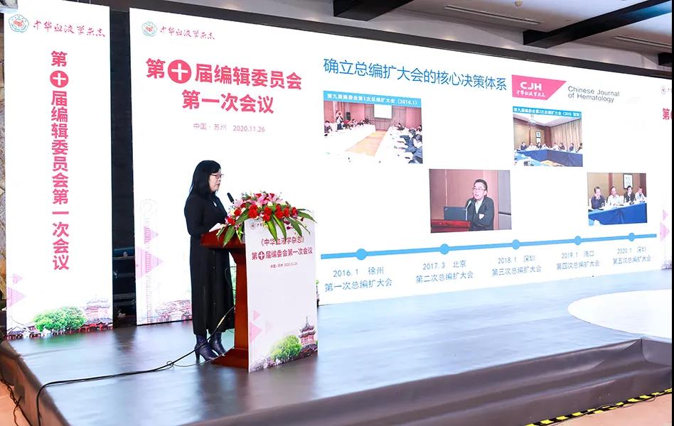 《中华血液学杂志》第十届编辑委员会第一次会议于2020年11月26日在苏州市隆重召开。中华医学会杂志社社长魏均民、中华医学会卢全副编审、《中华血液学杂志》总编辑吴德沛、中国医学科学院血液病医院(血液学研究所)院所长程涛以及90余位《中华血液学杂志》第十届编辑委员会委员及通讯编委出席了本次会议。