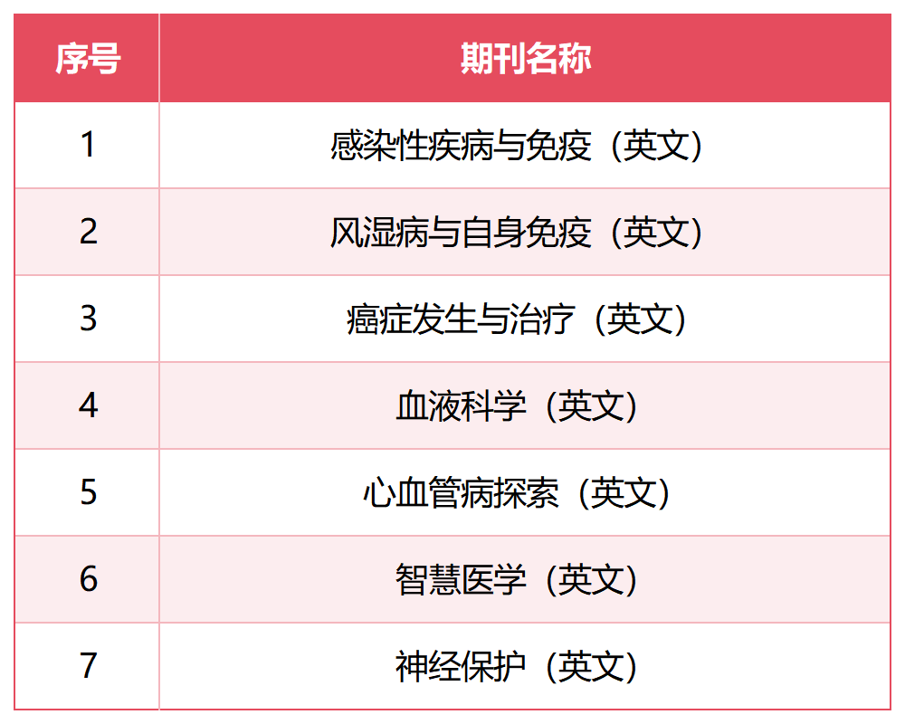 近日,北京市科学技术协会发布了《关于2025年度首都科技期刊卓越行动计划中英文单刊拟入选名单的公示》通知,经公开申报、形式审查、定量计分、专家评审,中华医学会共有17本期刊入选,包含英文期刊7种,中文期刊10种。